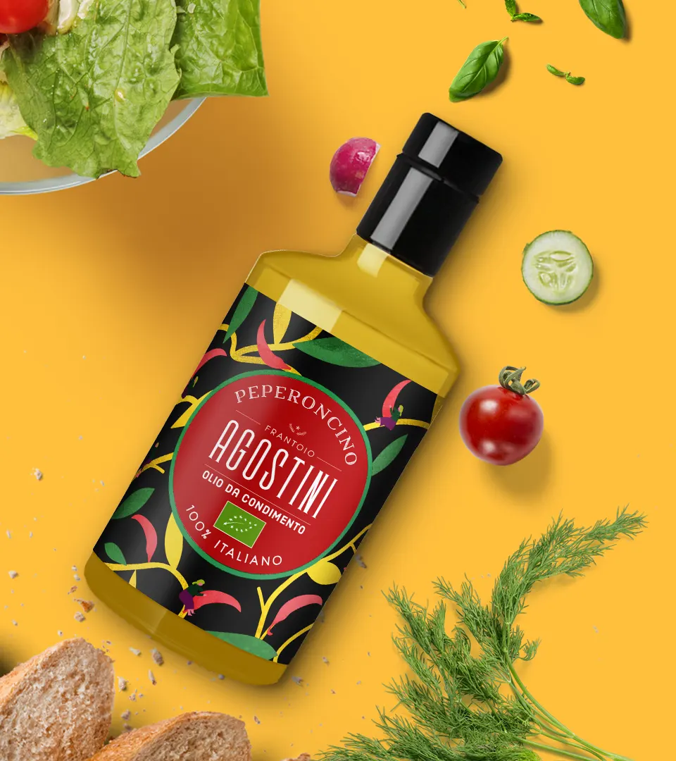 Condimento biologico a base di olio extra vergine di oliva. Note vivaci di peperoncino